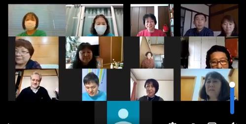 Zoomで、メイン会場と各自の自宅のハイブリッドで開催しました。